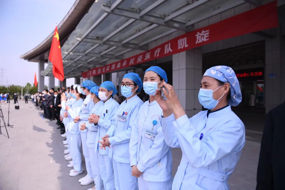 4月15日,济宁市第一人民医院385名支援曲阜核酸检测人员圆满完成任务,凯旋回家。济宁市第一人民医院举行了简短而隆重的欢迎仪式。市卫生健康委党组成员、医院党委书记孙树印,医院党委副书记、院长钟海涛及班子成员,相关科室人员参加仪式,共同欢迎医疗队员们平安归来。