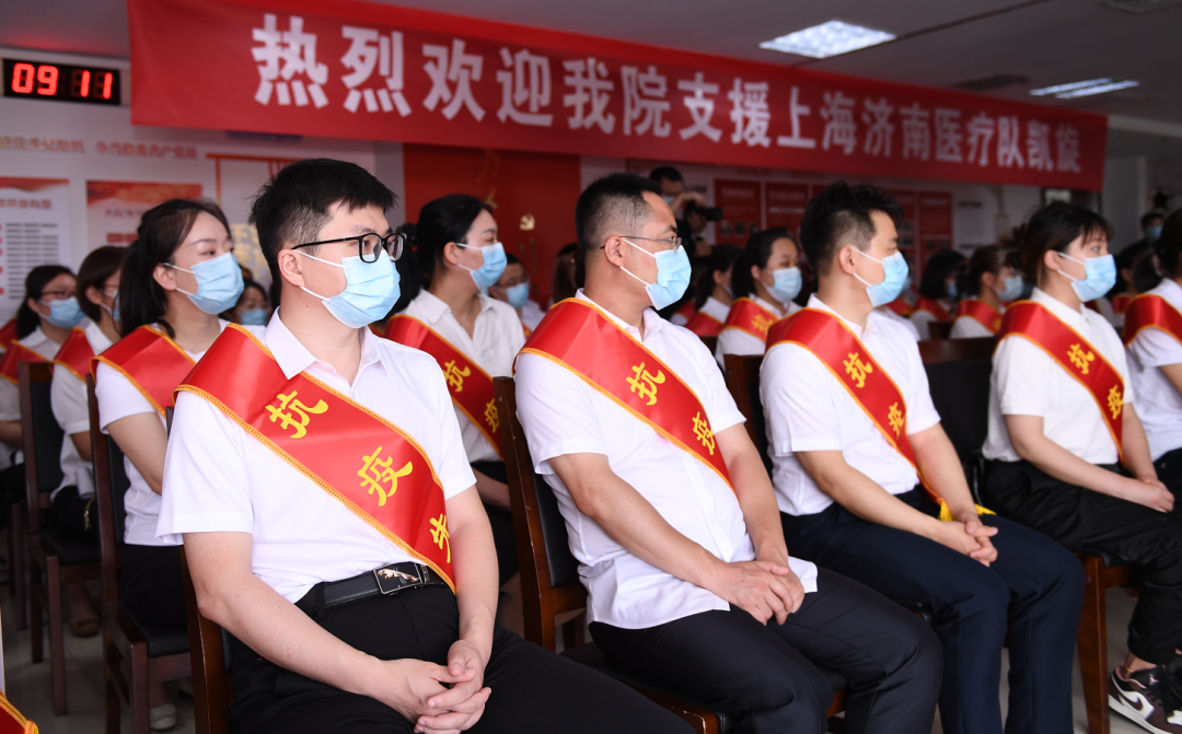 钟海涛代表医院党委向全体队员致以崇高敬意、亲切问候和热烈欢迎。在支援上海、济南的日日夜夜,你们冲在一线奋战吃苦,流汗、流泪、甚至个别受伤,用实际行动践行了不忘初心、敬畏生命的职业操守,展现了“百年一院”甘于奉献、能征善战、勇于攻坚的良好精神风貌;以优质的服务和一切为了人民健康的态度,赢得了当地政府和百姓的广泛赞誉;在院工作的同事们,也主动承担,用实际行动默默支持前线抗疫队员。经过休整,87名孩子们归队回家,希望大家回到工作岗位上,认真总结抗疫工作经验,在外面是一面旗帜,在各自的岗位上也是一面旗帜,更好为服务百姓健康作出更大贡献。