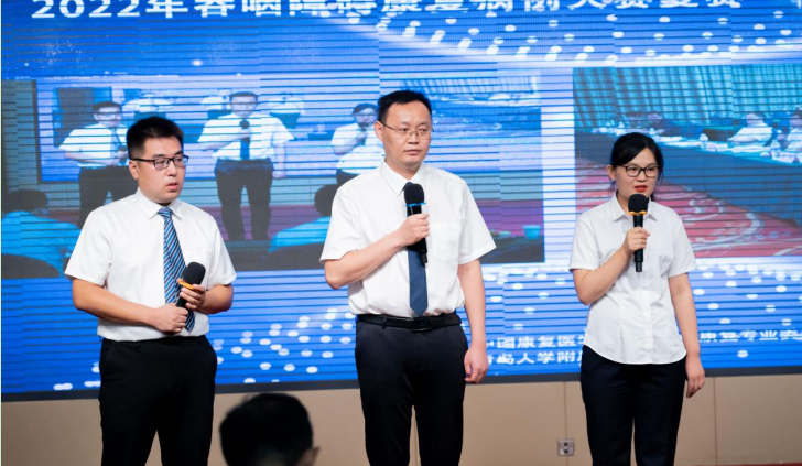 此次比赛,济宁市第一人民医院康复医学科派出治疗师刘丹丹、申延军,重症医学科医师马振组成团队,以“精准康复 唤醒重生希望”为口号,进行了《一例重度颅脑损伤合并PSH气切后患者吞咽障碍康复之路》病例分享,充分展示了我院MDT密切协作团队工作模式、早期重症吞咽康复治疗技术等工作亮点,获得评委专家的一致好评。