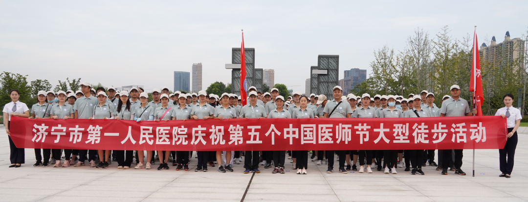 为庆祝第五个中国医师节,8月13日,济宁市第一人民医院广大医务工作者齐聚美丽的太白湖畔,开展大型徒步活动。医院党委委员、纪委书记郭金菊、医务部主任谢颖光带领医院240余名医务人员激情开走,共享集体活动带来的喜悦。