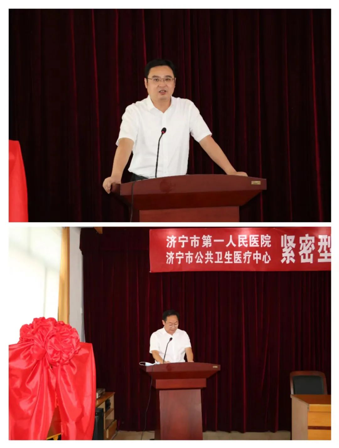 济宁市第一人民医院党委副书记、院长钟海涛在讲话中表示,济宁市第一人民医院和济宁市公共卫生医疗中心同属于济宁市卫生健康委下属兄弟单位,拥有深厚的协作交流基础,济宁市第一人民医院将以紧密型医联体建设为契机,加大合作帮扶力度,拓宽学科协作建设领域,整合两院优质医疗资源,提高全市医疗服务质量和水平,建立健全优质高效的医疗服务体系,更好地满足人民群众的健康需求。