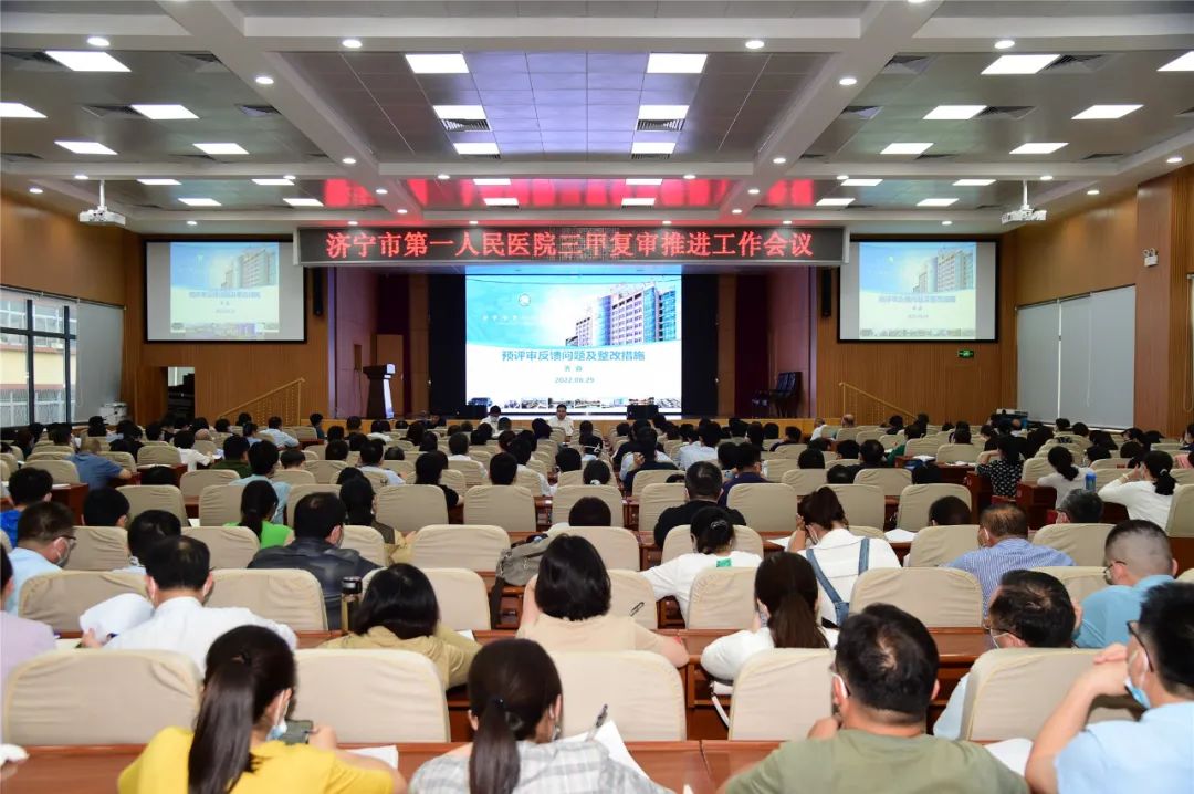 为进一步推进医院“三甲”复审迎检工作,抓好问题整改,达到以评促建、以评促改、评建并举、重在内涵的目的,8月29日,济宁市第一人民医院召开“三甲”复审推进会议,市卫生健康委党组成员、医院党委书记孙树印出席会议并讲话,医院党委副书记、院长钟海涛主持会议,医院副院长乔森对三甲预评审的总体情况进行了通报。全院中层干部600余人参加。