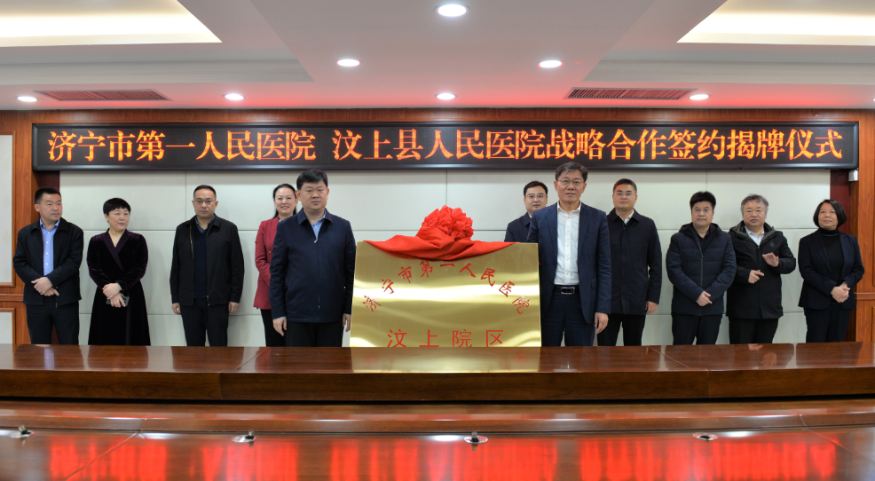 仪式上,双方签订《战略合作协议》,共同为“济宁市第一人民医院汶上院区”揭牌。