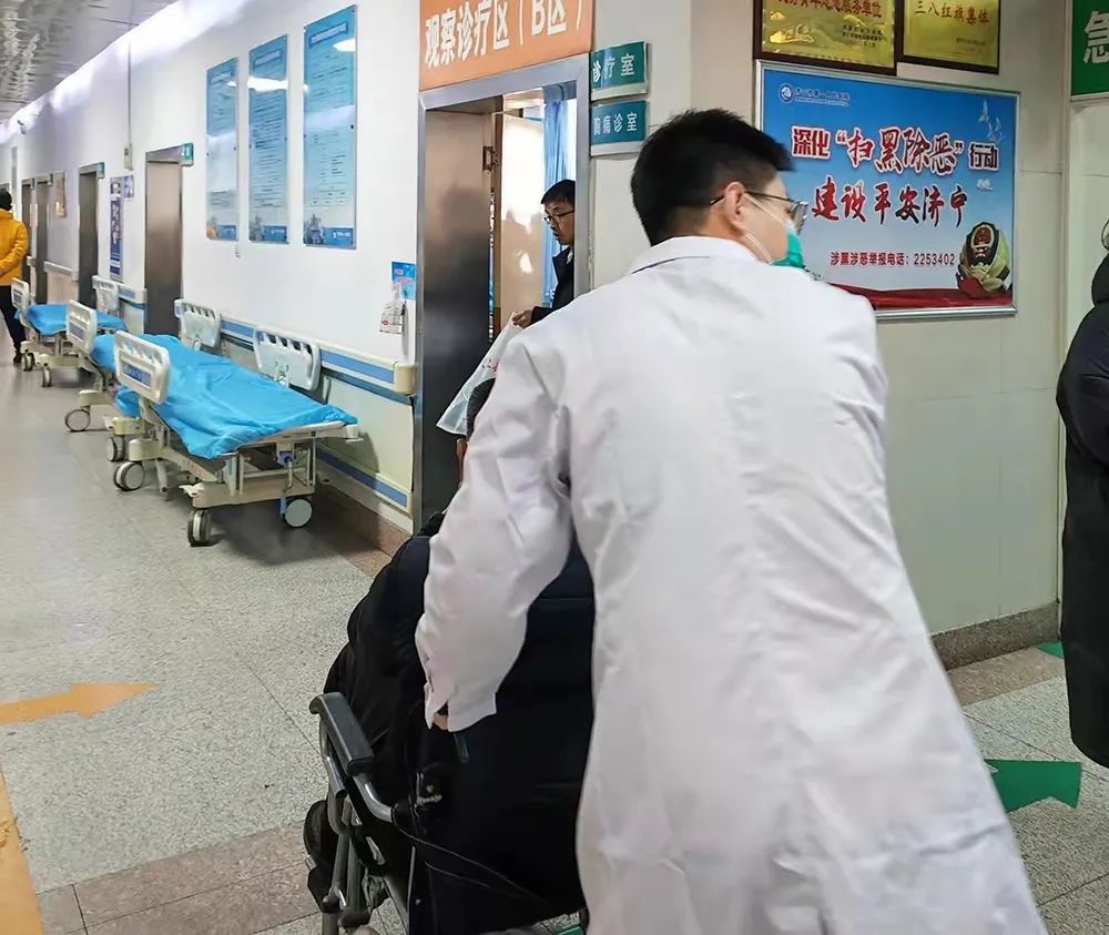 在征得家属沟通后,健康管理部备好急救箱,用轮椅进行转运,担心转运过程中会突发意识丧失或者抽搐,需及时进行心肺复苏,由健康管理部护士长侯蕾及其他医护人员全程陪同转运至急诊门诊。