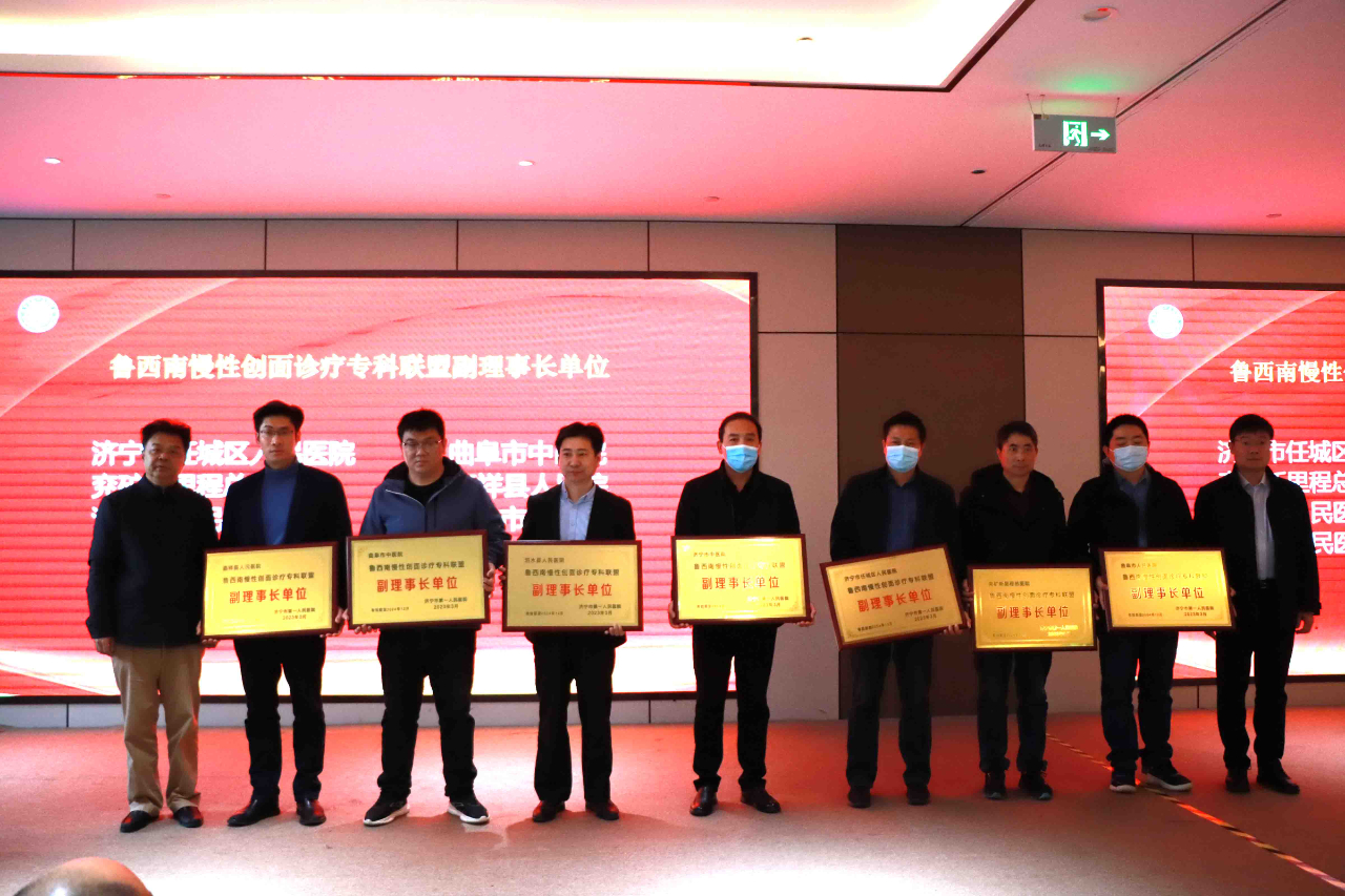 在医联体办公室主任孙逢国主持下,按照联盟章程选举产生专科联盟理事会,济宁市第一人民医院手外科足踝外科曾文超主任再次当选为鲁西南慢性创面诊疗联盟事长。现场,与会领导向联盟单位授牌。