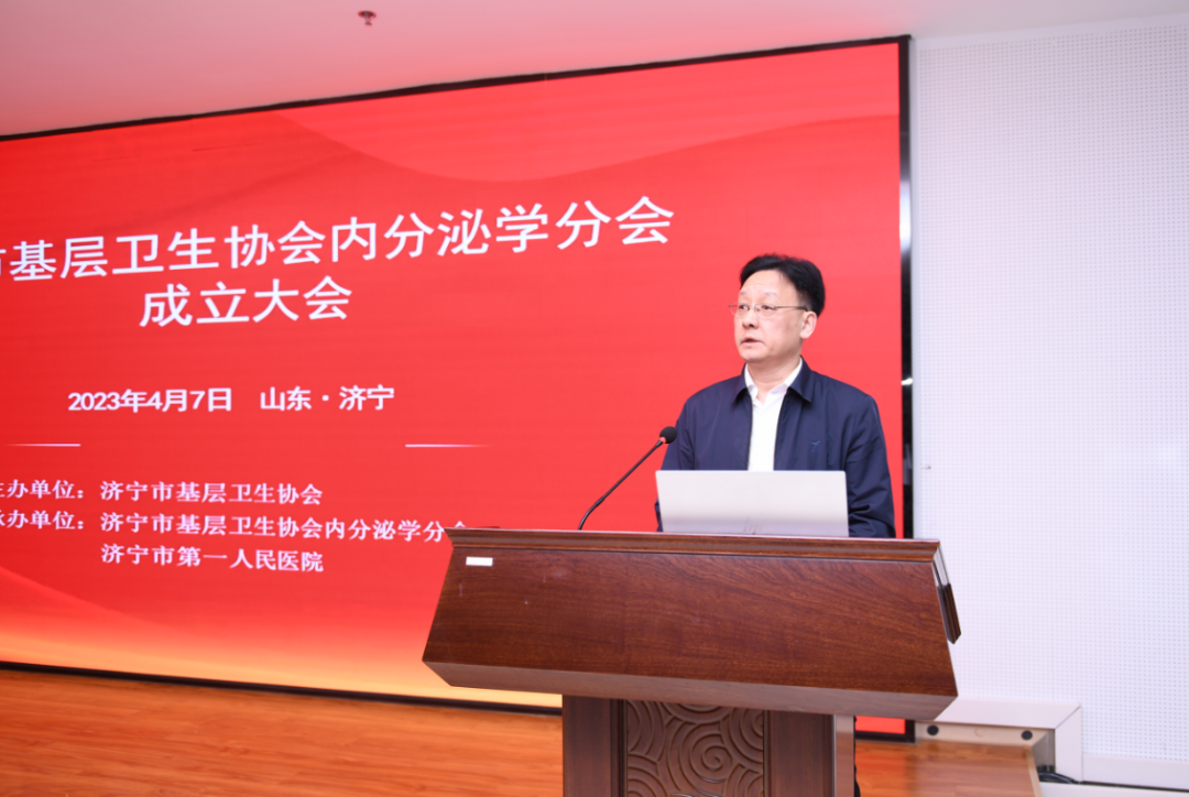 济宁市卫生健康委二级调研员、济宁市医学会常务副会长刘健,济宁市基层卫生协会副会长、济宁市公共卫生医疗中心党委副书记、院长刘仍强,济宁市第一人民医院理事长、副院长郭洪敏出席致辞。会议由济宁市基层卫生协会副秘书长张通主持。