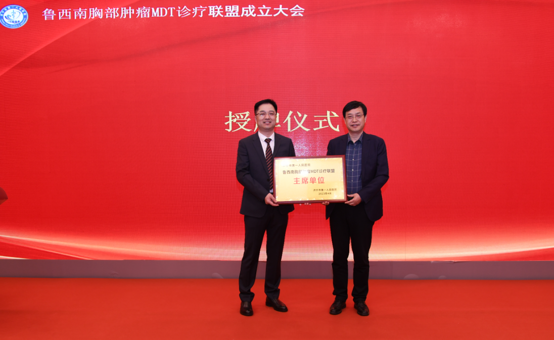 按照联盟章程,选举产生联盟主席单位、副主席单位及委员单位,济宁市第一人民医院胸外科主任魏育涛当选为鲁西南胸部肿瘤MDT诊疗联盟主席、济宁市胸部肿瘤MDT诊疗中心主任,与会领导向联盟单位授牌。