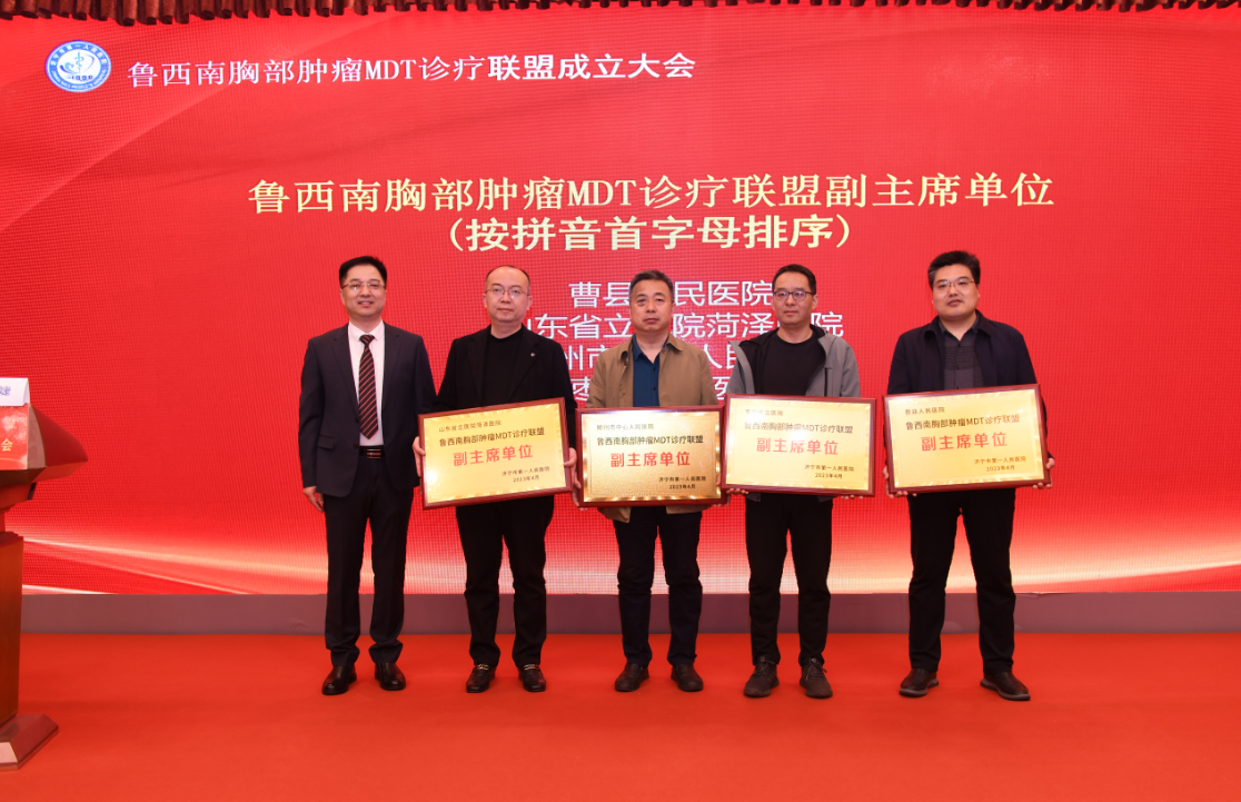 4月9日,“鲁西南胸部肿瘤MDT诊疗联盟”成立大会暨济宁市胸部肿瘤MDT诊疗中心成立在济宁举行。济宁市卫生健康委医政科科长孔晓、济宁市第一人民医院副院长乔森出席并致辞。会议特邀山东第一医科大学附属省立医院杨哲教授、山东大学齐鲁医院李际盛教授出席,来自鲁西南地区的23家医院院领导、胸部肿瘤相关专业负责人及专家200余人参加。