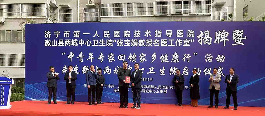 4月11日,济宁市第一人民医院技术指导医院、张宝娟教授名医工作室揭牌暨“中青年专家回馈家乡健康行”活动走进微山两城卫生院,并开展健康义诊咨询活动,为微山县广大人民群众献上一份温暖而贴心的健康福利。
