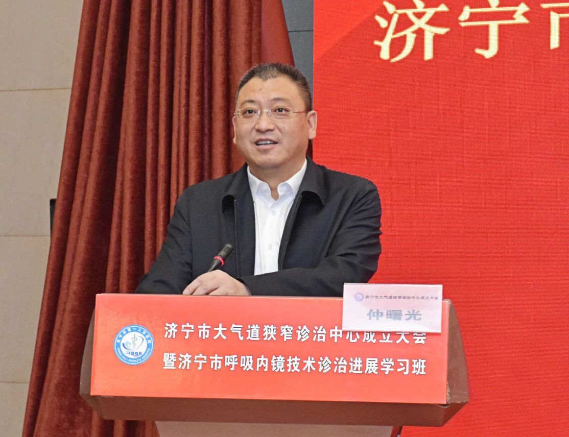 仲曙光书记在致辞中指出,大气道狭窄这一类患者牵扯到呼吸内科、乳甲外科、胸外科、重症医学科、康复科、麻醉科等多个专业学科,并不单纯为呼吸科疾病,通过大气道狭窄诊治中心的成立,整合济宁市第一人民医院多专业学科的优质医疗资源,积极探索多学科联合诊治的新模式,形成由“专科”治疗到“专病”的多学科联合治疗的新医疗模式,起到1+1>2的效果,并依托大气道狭窄诊治中心的平台,在各个县市区医院建设分中心,结合中心的带头作用,结合各个分中心的不同需求,建立上下联动、优势共享、同步提升进步,更好的为我市人民群众健康服务。
