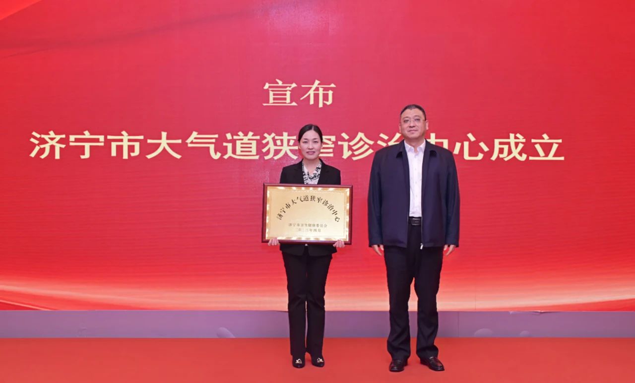 按照启动仪式流程,济宁市第一人民医院呼吸与危重症医学科边翠霞主任担任济宁市大气道狭窄诊治中心主任,并由仲曙光书记向边翠霞主任进行授牌。