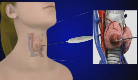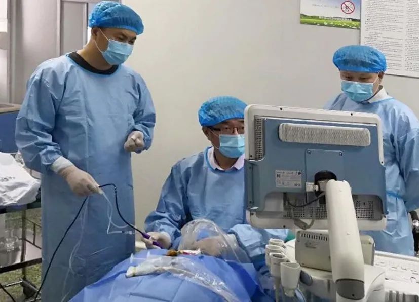 项目负责人吕镔主任介绍,甲状腺结节是临床常见病、多发病,检出率高达20%~70%,大部分结节为良性。甲状腺良性结节影响美观或者有压迫症状者,既往治疗方式为手术切除,但其缺点是创伤大、颈部留下瘢痕、部分患者需终身服药;超声引导下甲状腺良性结节微创消融治疗是用穿刺针或消融针置入结节内即可完成治疗,具有超微创、安全、有效、经济、美观的特点,目前已被业内及患者广泛认可。