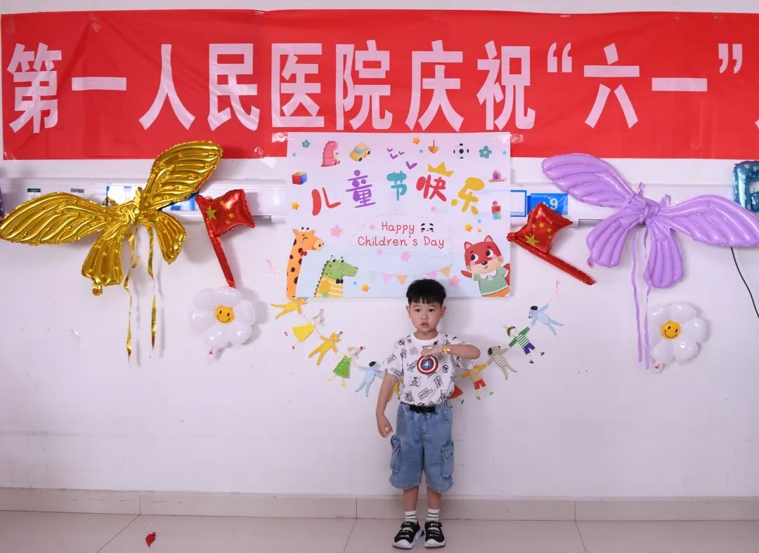 六一儿童节是孩子们的节日,可是有一些小朋友因为生病,不得不在医院进行治疗,为了让小朋友们在住院期间同样能感受到节日的气氛,也能过上一个快乐、温馨的儿童节,济宁市第一人民医院儿科医护人员提前做好了准备:高高悬挂的彩带横幅,五颜六色的气球……给病房增添了一些生机及节日的氛围,映衬着孩子们的笑脸显得格外喜庆。