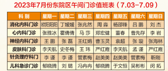 济宁市第一人民医院午间门诊排班(7月3日-7月9日)