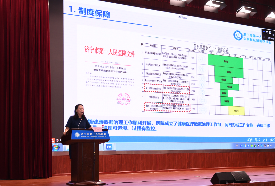 会上,济宁市第一人民医院代表全市做典型发言,分享了在数据高铁专项治理工作中具体做法。