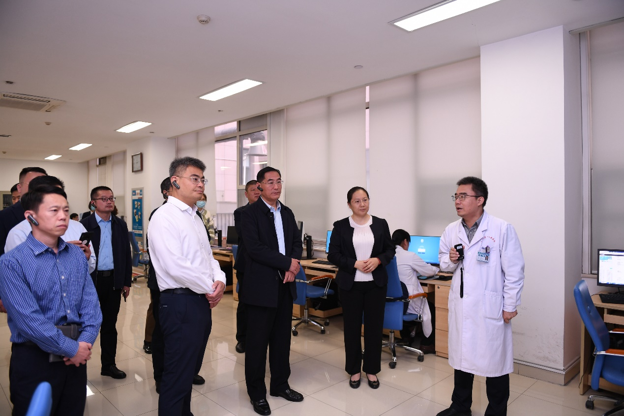 随后,韦有华一行实地参观了健康管理部查体中心及国际医疗部,并现场观摩导检单自助打印设备及全智能语音导检系统,还分组就健康管理部运营、学科建设等情况进入交流探讨。韦有华对济宁市第一人民医院整体发展情况给予高度评价,希望借此机会,加深双方在医院管理、医疗技术等方面的交流,取长补短,相互借鉴学习,促进共同发展,为广大患者提供更优质的医疗服务。