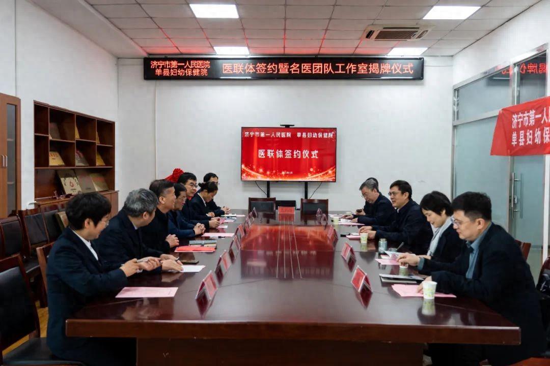 3月12日上午,济宁市第一人民医院与单县妇幼保健院举行医联体签约暨名医团队工作室揭牌仪式在单县举行。济宁市第一人民医院党委委员、副院长韩捷,单县妇幼保健院党委书记崔勇,党委副书记、院长肖忠坤,以及两家医院相关部门科室负责人参加会议。会议由单县妇幼保健院党委委员、副院长张国华主持。