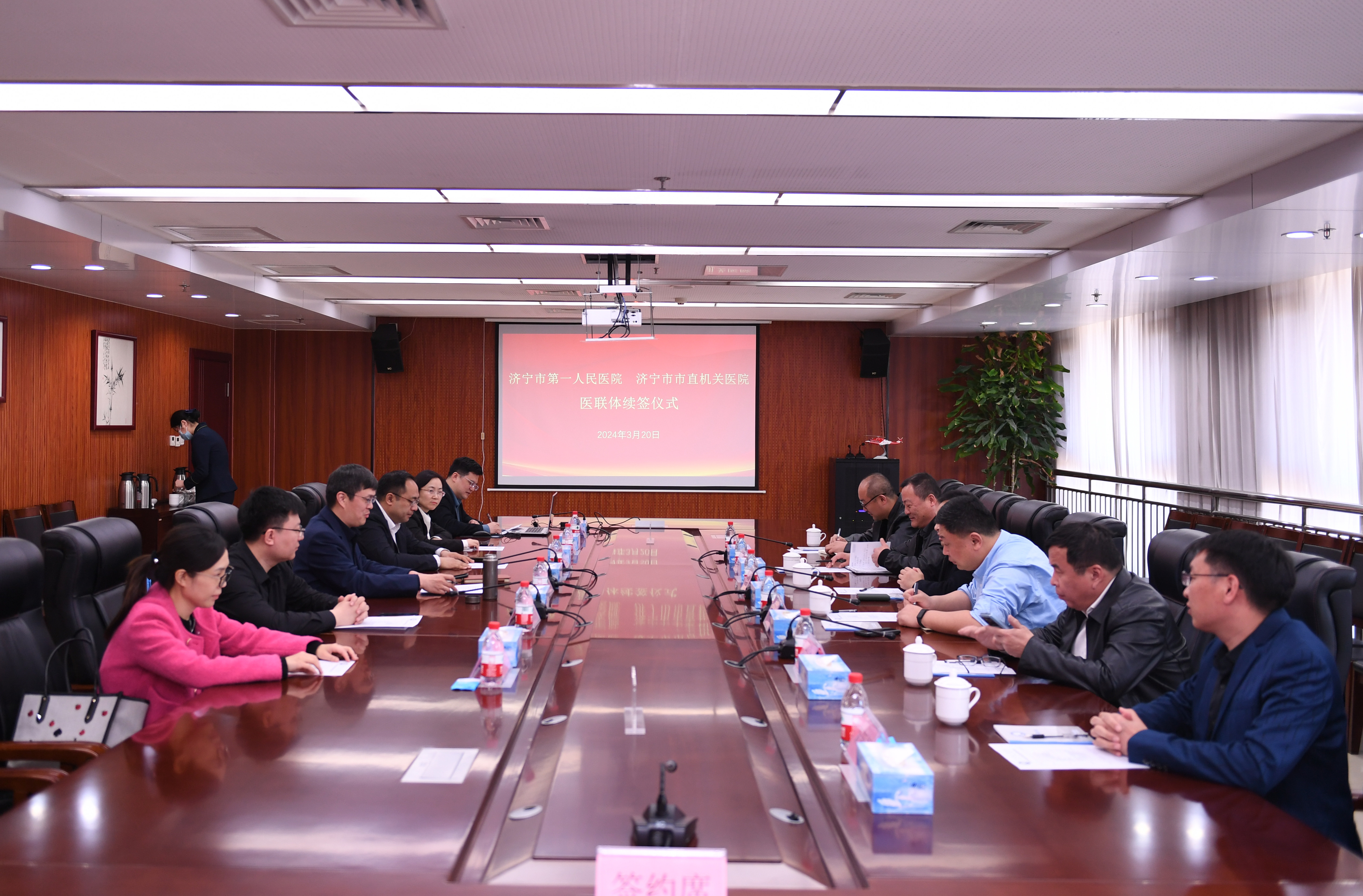 3月20日,济宁市第一人民医院与济宁市市直机关医院医联体续签仪式举行。济宁市第一人民医院党委委员、副院长韩捷,济宁市市直机关医院党委副书记、院长贺刚及双方有关科室负责人参加座谈交流。