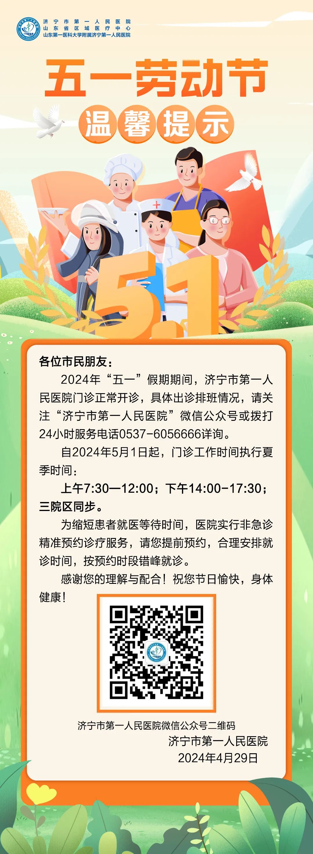 济宁市第一人民医院“五一”期间门诊就诊温馨提示