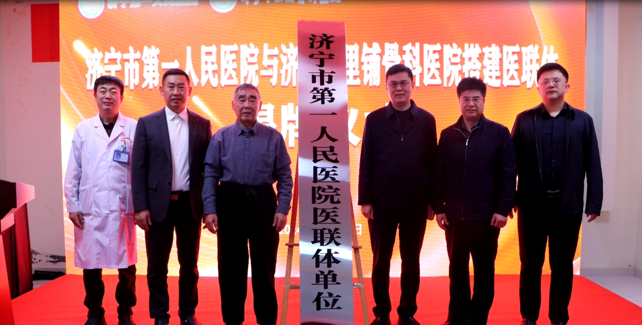 11月19日,济宁市第一人民医院与任城区十里铺骨科医院医联体合作签约暨揭牌仪式成功举行。济宁市第一人民医院党委委员、副院长韩捷,任城区十里铺骨科医院董事长王仕启,院长王长猛及两院相关科室负责人参加仪式。