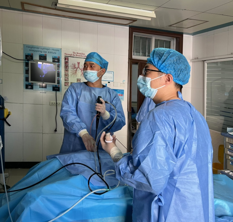 盛宝巍教授团队为患者行支气管检查及治疗