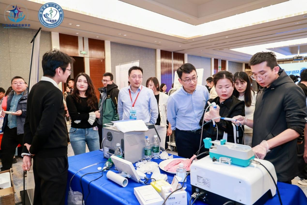 在手实操教学现场,教授们分别为金属支架的置入与取出、激光的应用、气道 BT 的使用、冷冻活检、活检与刷检等5个项目进行手把手带教,专家们以严谨的态度和专业的技能,为学员们详细演示操作流程,现场学习氛围浓厚。