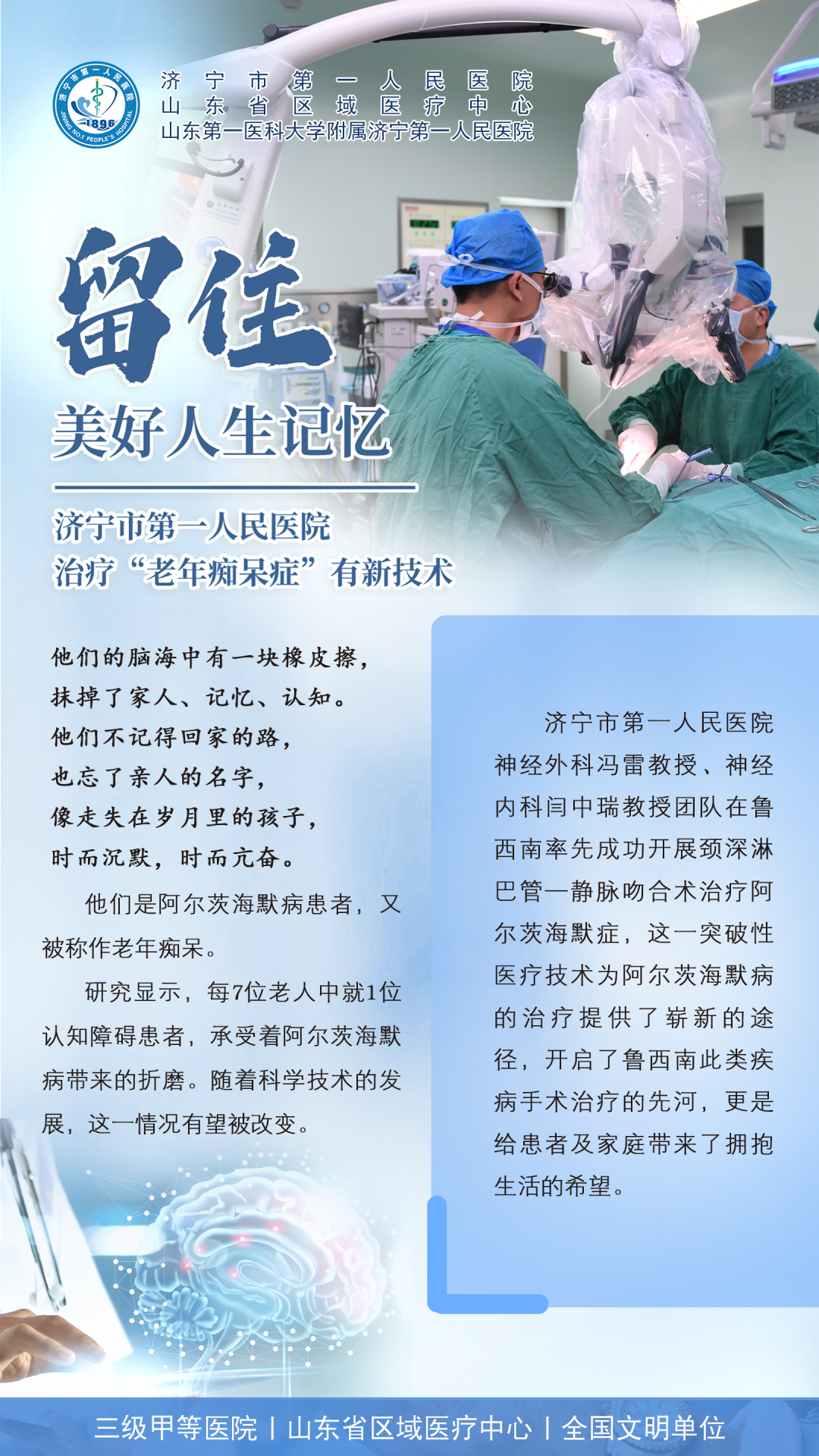 【一院技术】留住美好人生记忆,济宁市第一人民医院治疗“老年痴呆症”有新技术