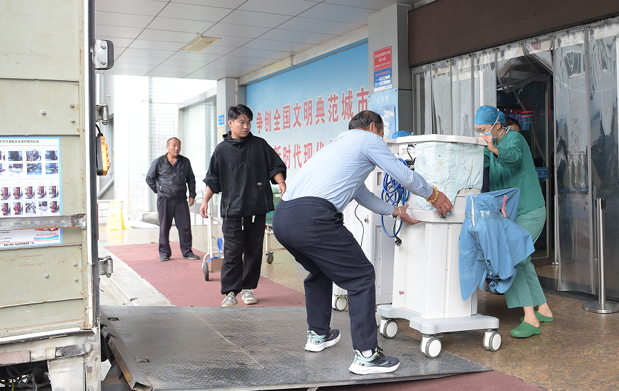 在这场紧张而有序的1号病房楼搬迁中, 秩序井然,服务不间断。医院提前制定了周密的搬迁计划,在医院领导班子的带领下,门诊部、医务部、护理部、信息科、总务部、基建部等各职能科室与临床科室紧密配合,统筹物品打包、转运及新址调试等环节。从病房仪器设备、办公设备到医疗常用物资,各部门分工明确、衔接顺畅,细致完成打包、标识、搬运及安装等一系列流程,最大限度减少对日常接诊的影响,全力守护患者治疗的连续与安全。