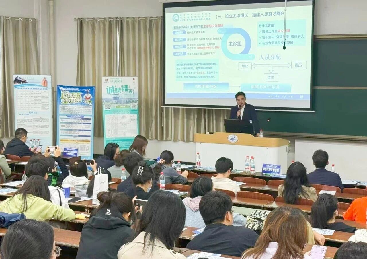 在专场宣讲会上,钟海涛以“百年一院”的辉煌历史与高质量发展成效为引,全面展示了医院在学科建设、科研平台及人才成长生态上的核心优势,并就医院倾力打造的支持人才发展的“十项措施”等政策进行了精准解读,字里行间满载着医院求贤若渴、珍视人才的拳拳诚意,深深打动在场学子。