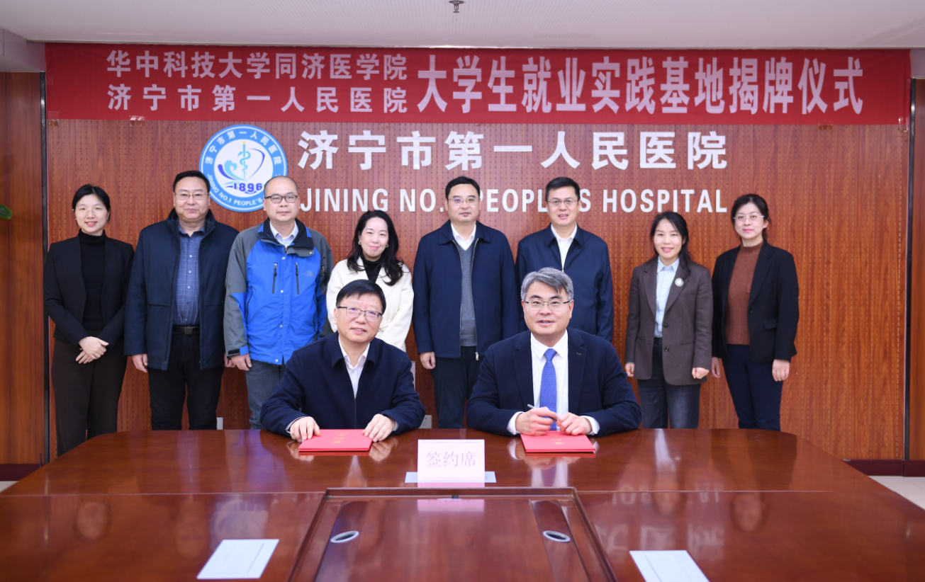 济宁市第一人民医院与华中科技大学同济医学院合作签约暨“大学生就业实践基地”揭牌仪式在济宁市第一人民医院医师培训楼举行。华中科技大学同济医学院党委副书记、纪委书记陈秋生一行莅临医院调研交流。医院党委书记钟海涛、院长冯雷及领导班子成员、相关职能部室负责人参加,仪式由党委委员、副院长韩捷主持。