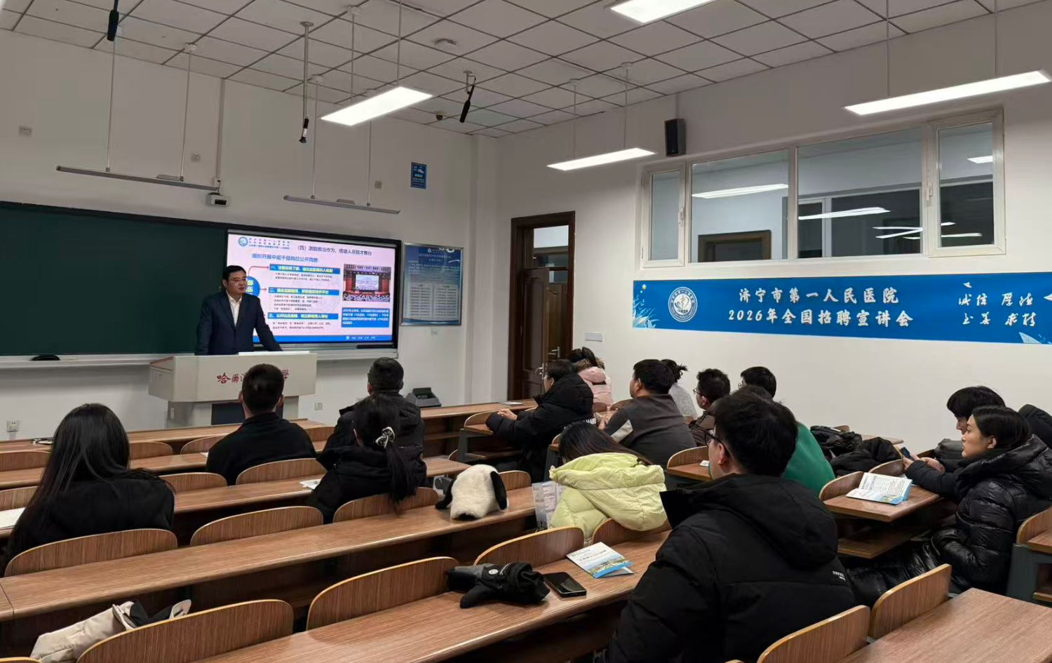 在宣讲中,钟海涛系统介绍了医院作为百年医院的发展历程与医院高质量发展的扎实成绩,着重阐述了医院在推动研究型医院建设、构建“引育管用”全链条人才生态、打造人才“科研+临床”双通路发展渠道等方面的具体举措,并详细解读了支持人才发展的“十项措施”及其配套资源,向东北学子传递出“百年一院”广纳贤才、共谋发展的持续诚意。招聘现场互动频繁、气氛热烈。医院通过图版、手册多维度展示学科优势与职业前景,人力资源部、科研部负责人与到场博士进行了一对一深入沟通,针对职业规划、科研启动、团队支持等问题给予清晰解答,不少学子现场递交简历并表达强烈加盟意愿。