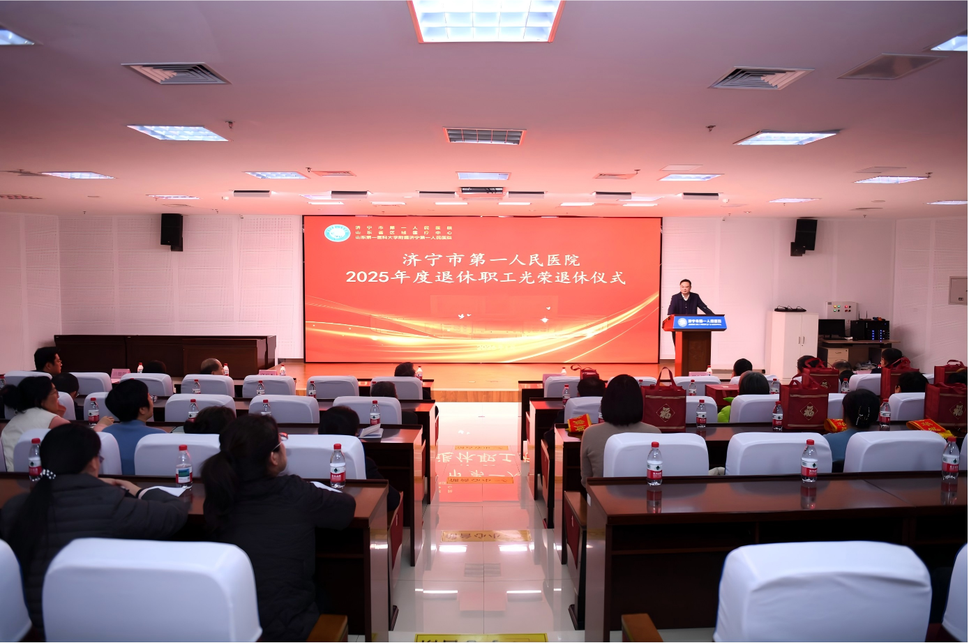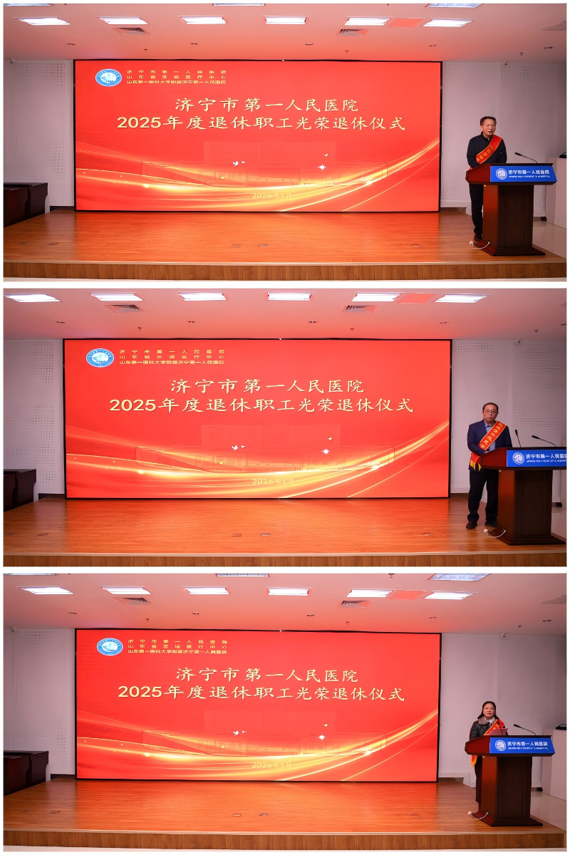 短片落幕,氛围依旧浓烈。魏震随后宣读《济宁市第一人民医院2025年退休职工名单》,每一个被念出的名字,都与短片中的画面重叠,承载着一段扎根医疗事业的坚守岁月。