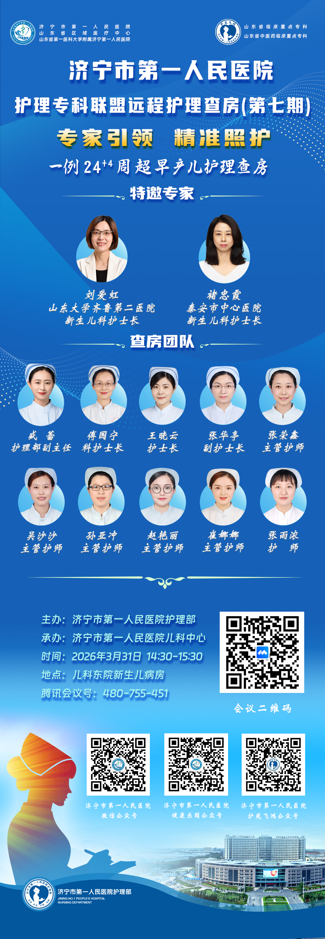 为进一步提升超早产儿综合救治能力,深化区域协作,推动护理服务同质化发展,3月31日,由济宁市第一人民医院护理部主办的《专家引领精准照护—— 一例24+4周超早产儿护理查房》顺利举行。