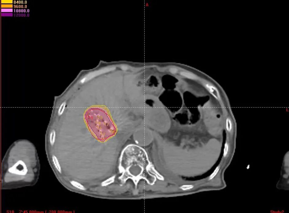 1、术前精准规划:制定三维治疗计划系统(TPS)勾画肿瘤靶区,精确规划粒子的分布范围、数量、活度及间距,确保粒子均匀覆盖整个病灶,同时避开周围的血管、胆管等正常组织,实现“局部剂量高、周围正常组织损伤小”的治疗目标。
