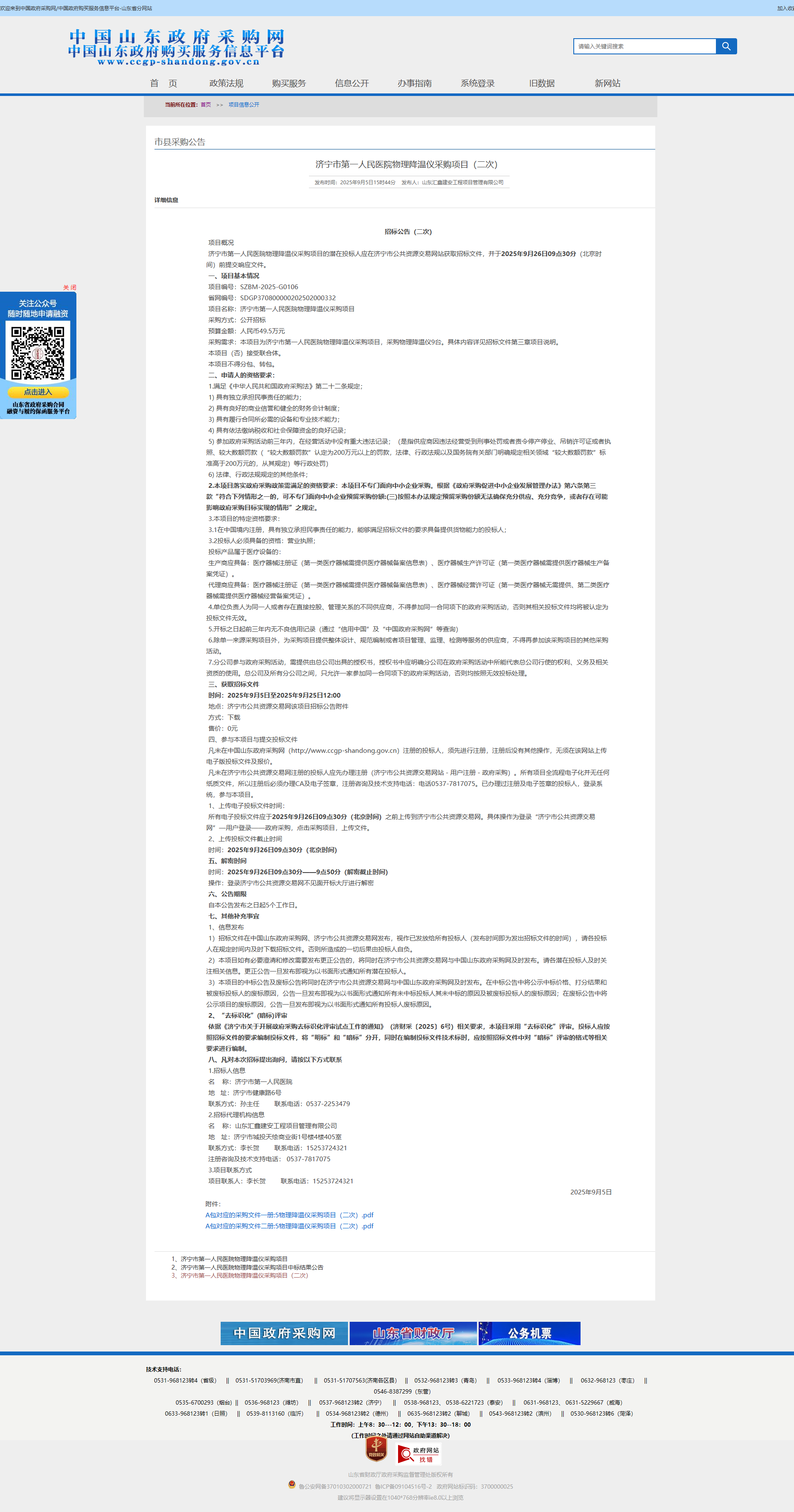 济宁市第一人民医院物理降温仪采购项目(二次)招标公告