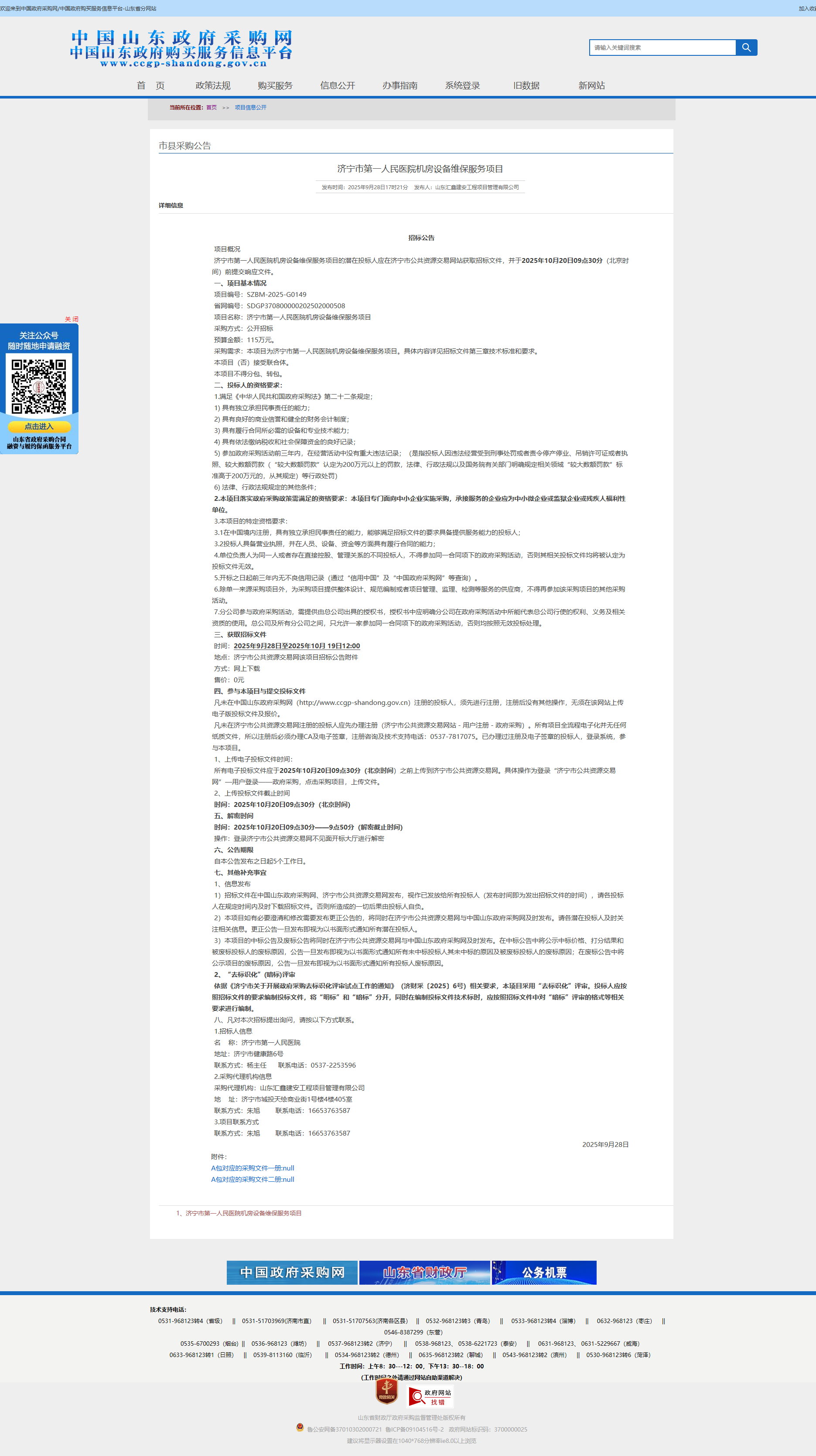 济宁市第一人民医院机房设备维保服务项目招标公告