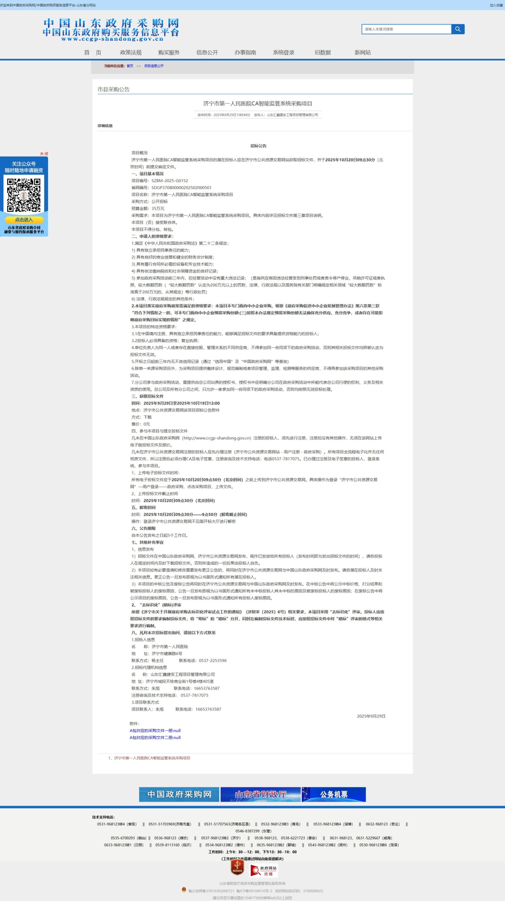 济宁市第一人民医院CA智能监管系统采购项目招标公告