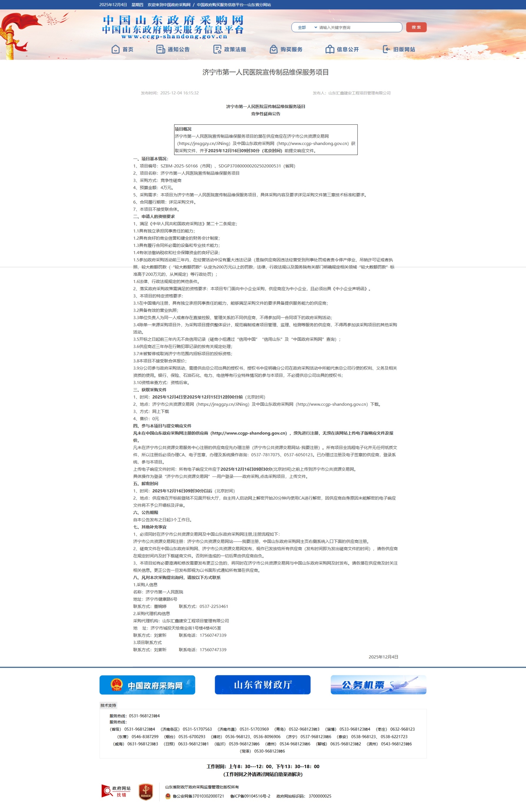 济宁市第一人民医院宣传制品维保服务项目竞争性磋商公告