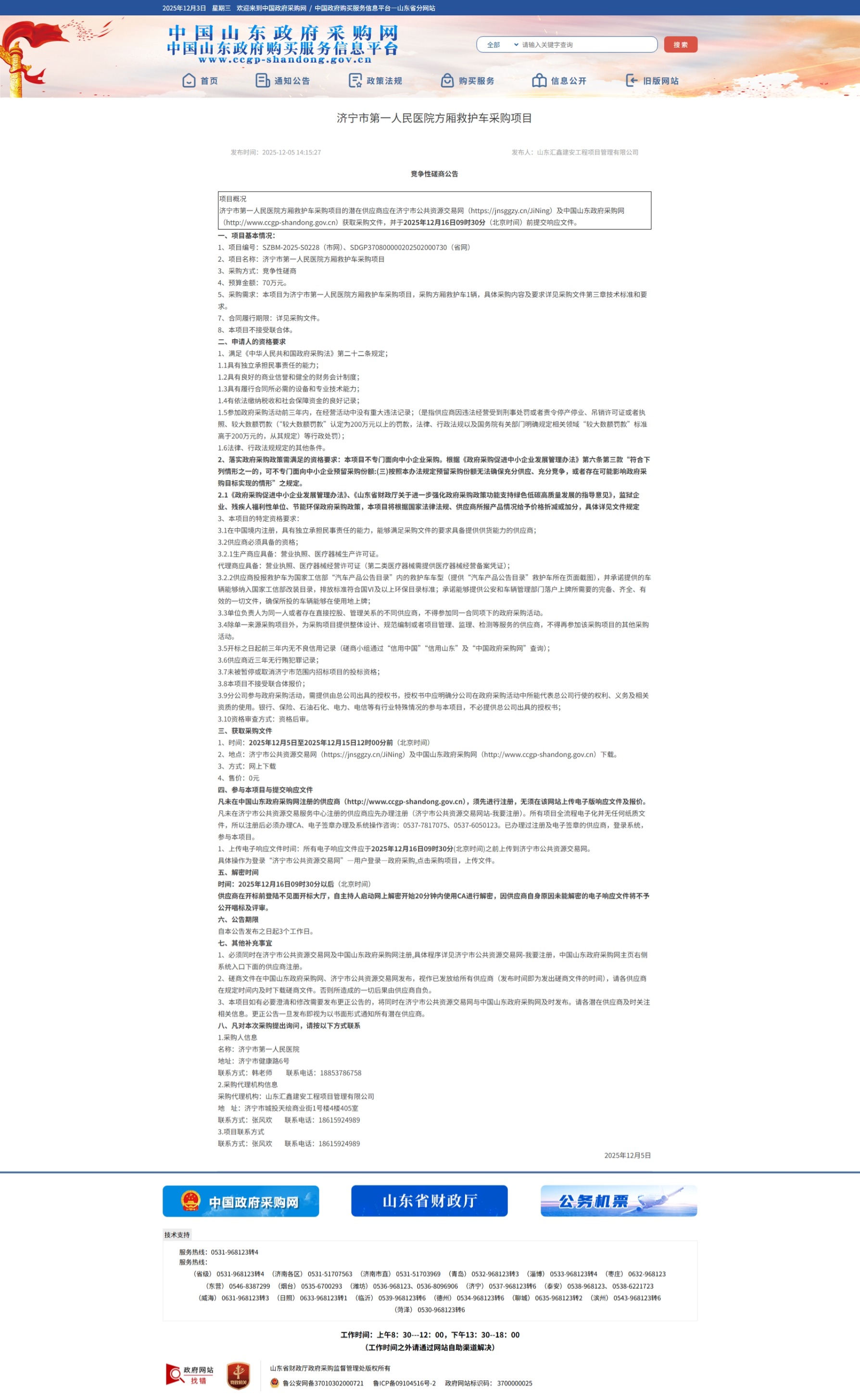 济宁市第一人民医院方厢救护车采购项目竞争性磋商公告