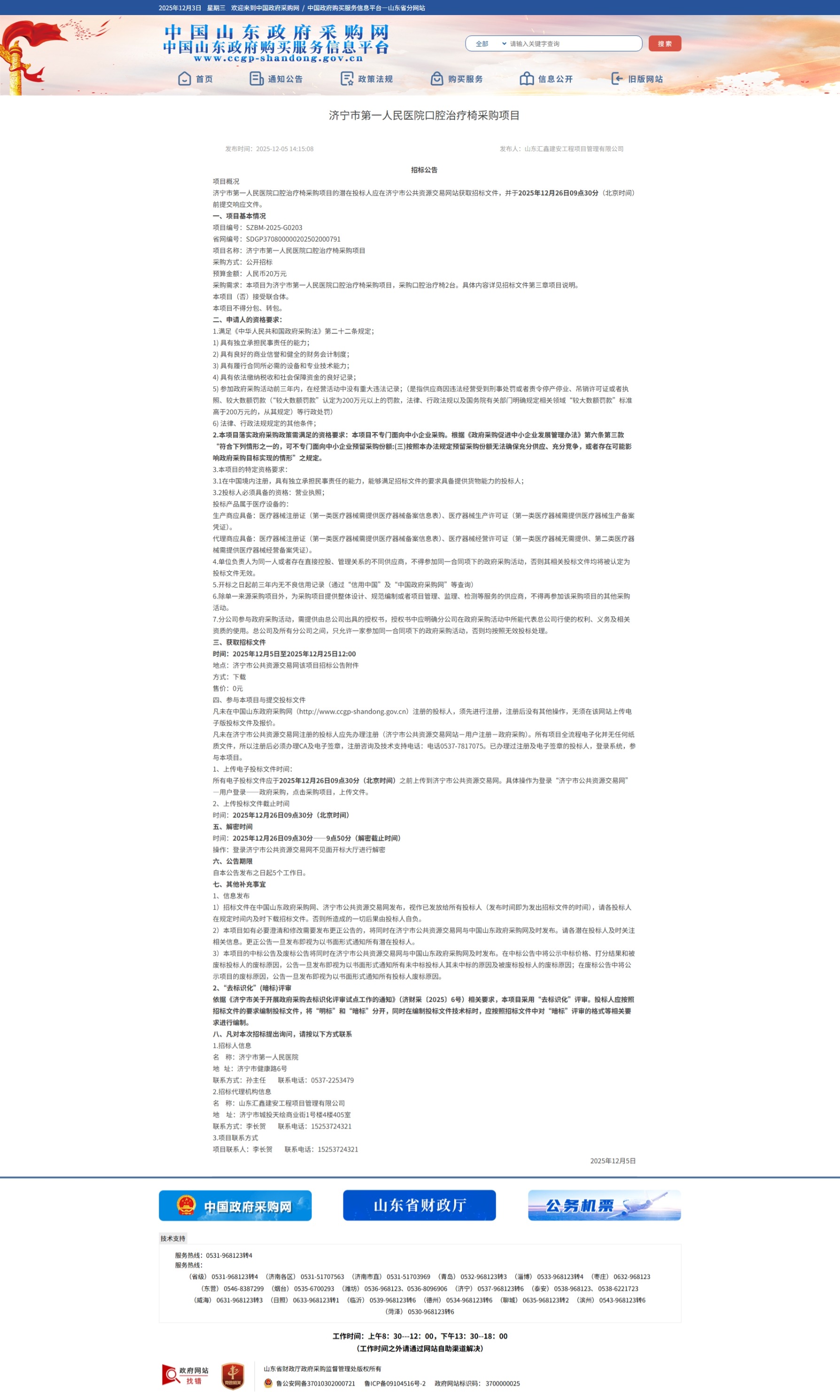 济宁市第一人民医院口腔治疗椅采购项目招标公告