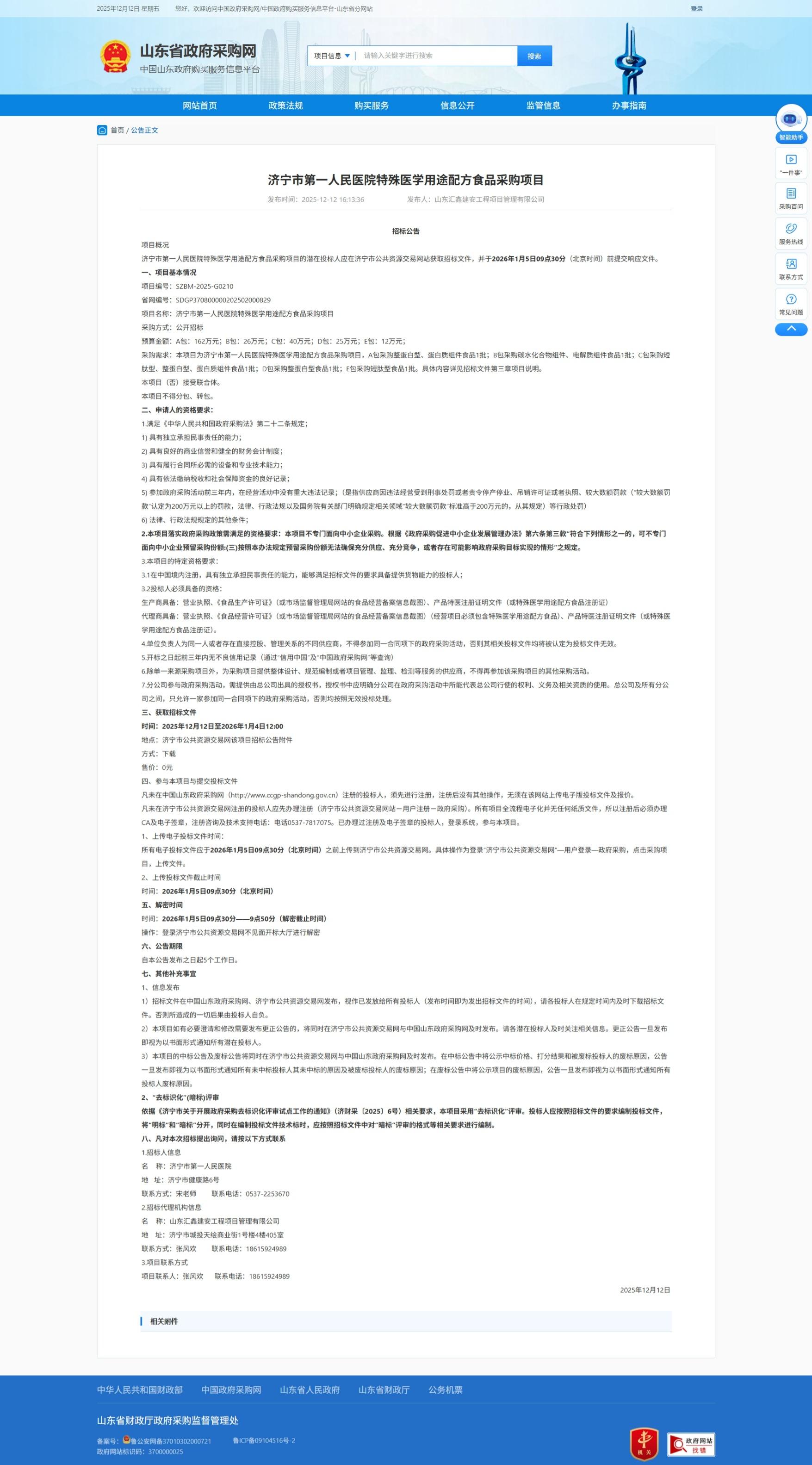 济宁市第一人民医院特殊医学用途配方食品采购项目招标公告