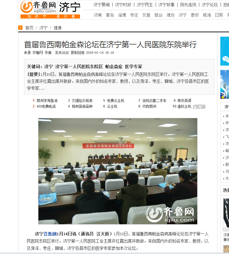 齐鲁网--首届鲁西南帕金森论坛在济宁第一人民医院东院举行