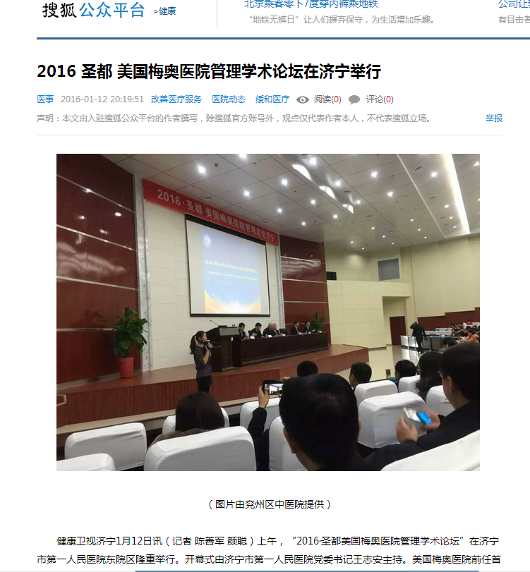 搜狐网--2016 圣都 美国梅奥医院管理学术论坛在济宁举行