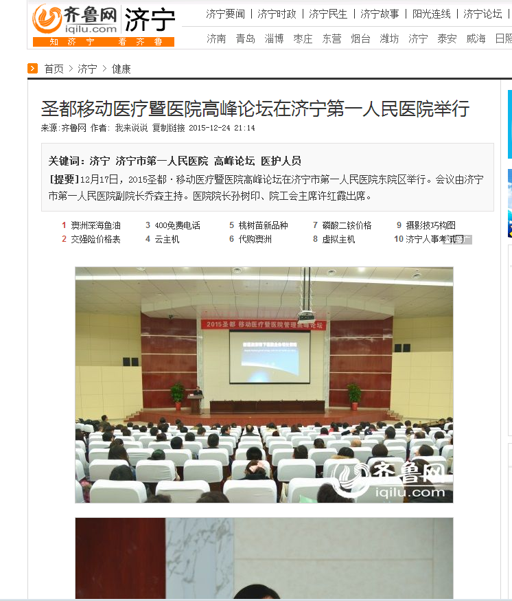 齐鲁网--圣都移动医疗暨医院高峰论坛在济宁第一人民医院举行