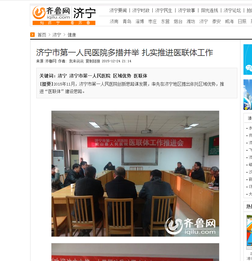 齐鲁网--济宁市第一人民医院多措并举 扎实推进医联体工作