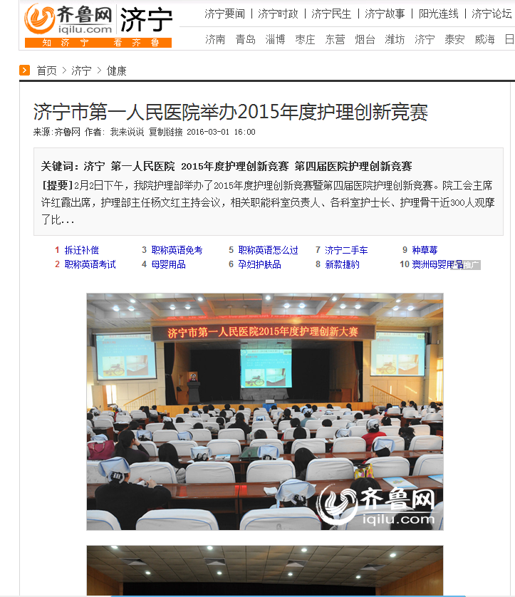 齐鲁网--济宁市第一人民医院举办2015年度护理创新竞赛