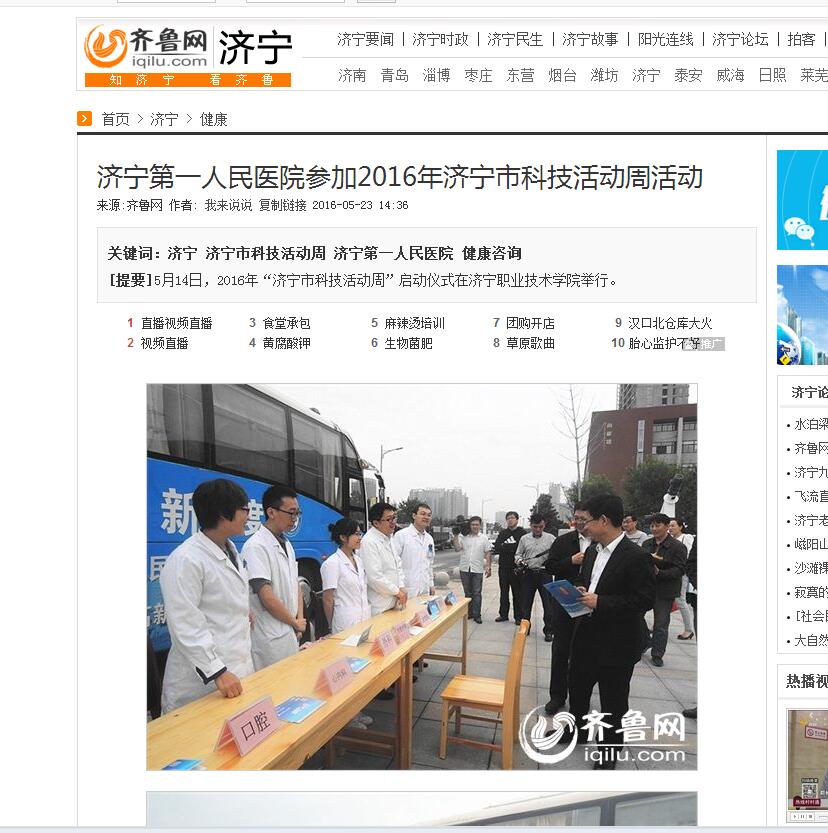 齐鲁网--济宁第一人民医院参加2016年济宁市科技活动周活动