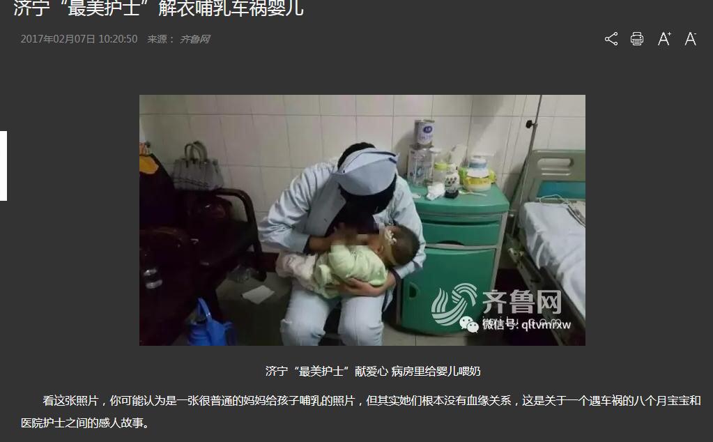 新华网--济宁“最美护士”解衣哺乳车祸婴儿