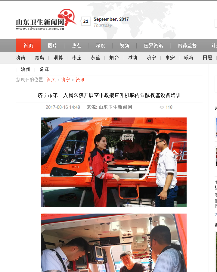 山东卫生新闻网--济宁市第一人民医院开展空中救援直升机舱内适航仪器设备培训