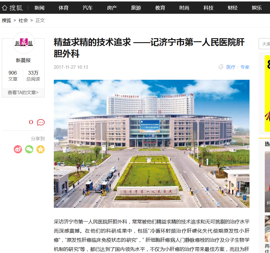搜狐--精益求精的技术追求 ——记济宁市第一人民医院肝胆外科